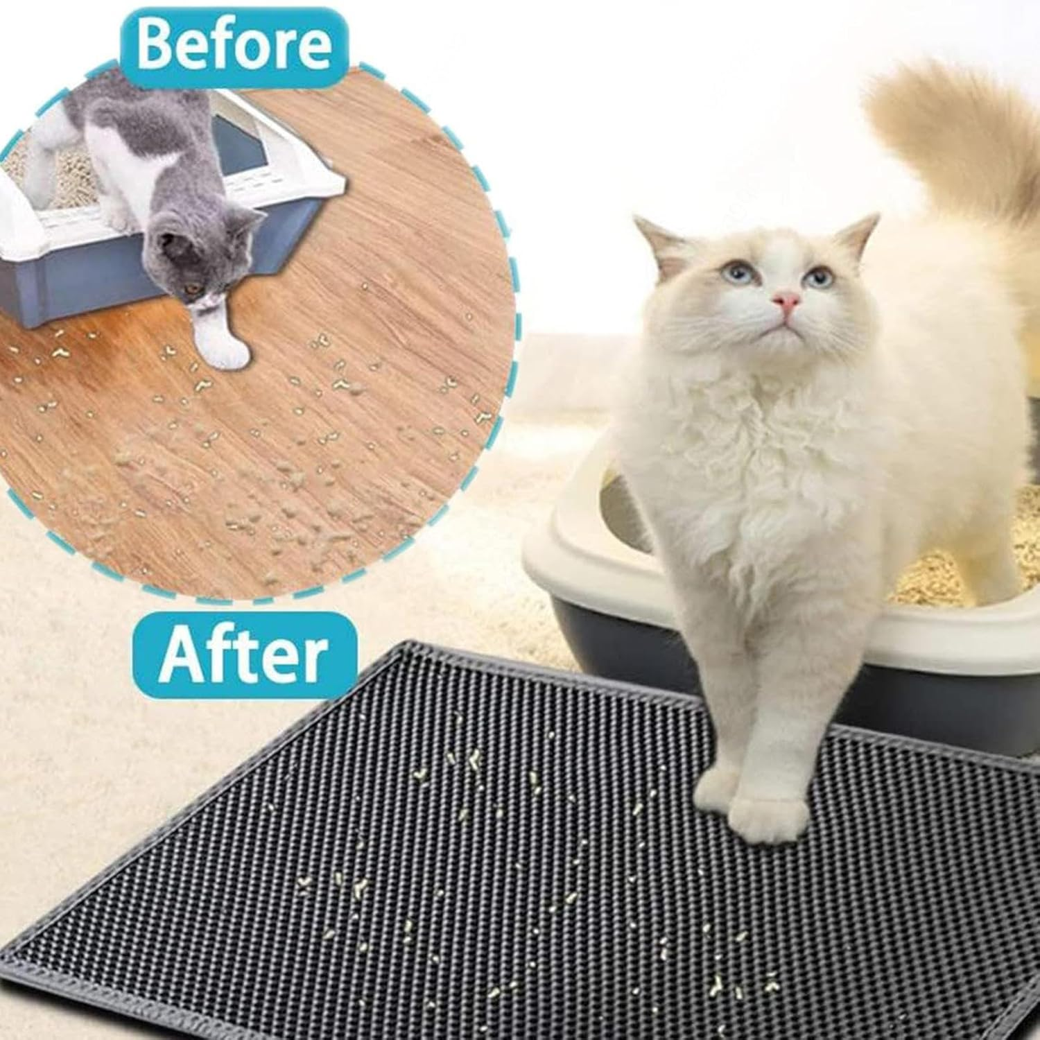 - Waterproof/Urine Proof Mat: Cat Litter Mat Bottom Layer Is Waterproof and Also Slip-Resistant Which Will Not Allow Any Liquid to Go Through and Easy to Move.Protect Your Hardwood Floors and Carpets from Nasty Urine Stains.