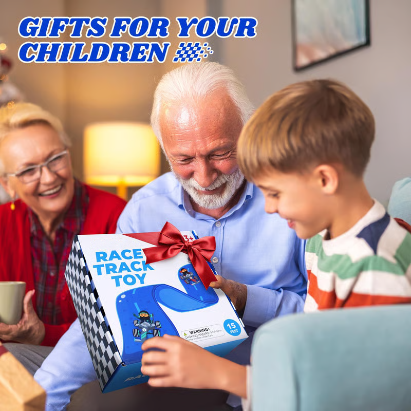 The track stretches an impressive 13.1 ft! Our Flexible Racing Track Set isn’t just a racecourse—it’s an adventure kids get to build themselves. From loops and ramps to daring drops, every track they design brings new thrills and excitement that keep them coming back for more.
