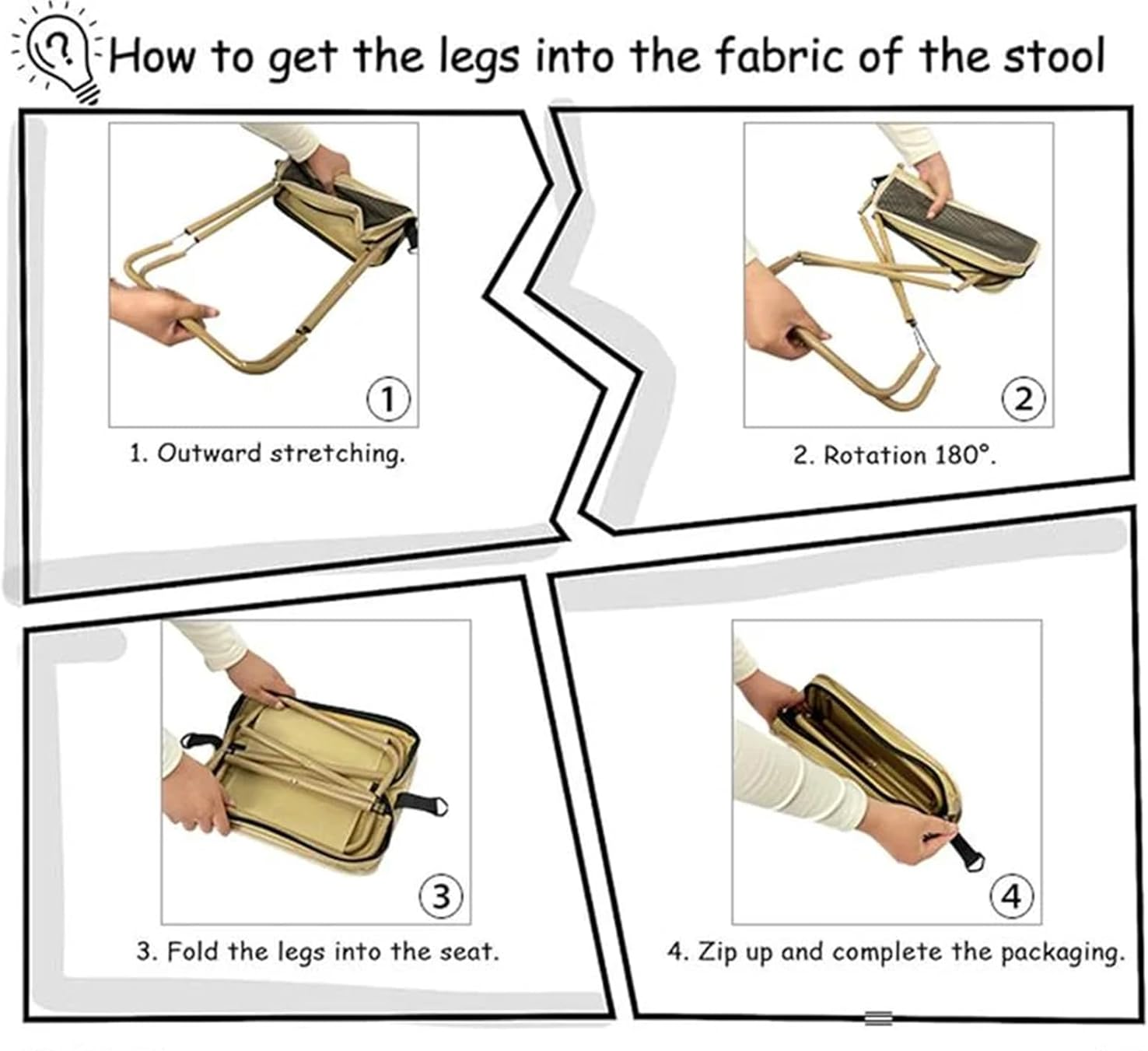 No assembly required—just unfold and sit. The stool collapses flat in seconds and packs neatly into its own built-in carry bag with shoulder strap. Lightweight yet sturdy, it’s easy to stash in your car, backpack, or closet when not in use.